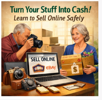 Learn how to safely sell on: Ebay, Facebook Marketplace, Kijiji. We’ll cover: Creating Listings, Taking and uploading good photos, Pricing items competitively, selling safely, avoiding scams.